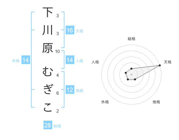 下川原 むぎこさんの天格は16画の5点!