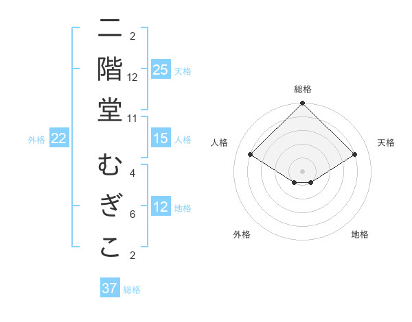 二階堂 むぎこさんの総格は37画の5点!