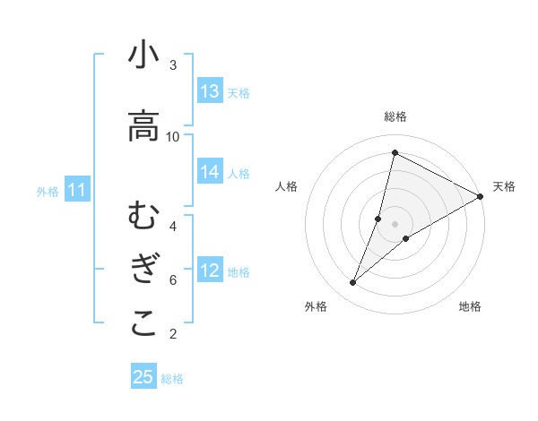 小高 むぎこさんを姓名の画数から五運を鑑定