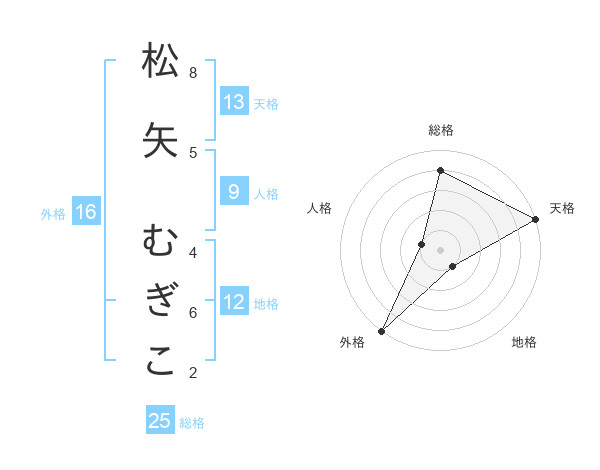 松矢 むぎこさんを姓名の画数から五運を鑑定