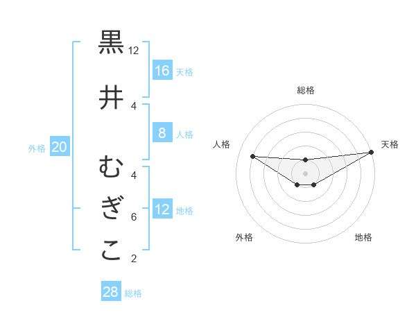 黒井 むぎこさんを姓名の画数から五運を鑑定