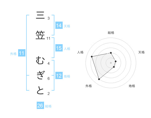 三笠 むぎとさんを姓名の画数から五運を鑑定