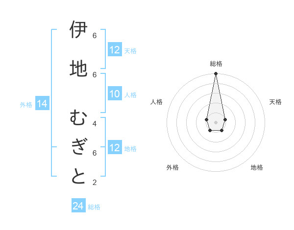 伊地 むぎとさんの総格は24画の5点!