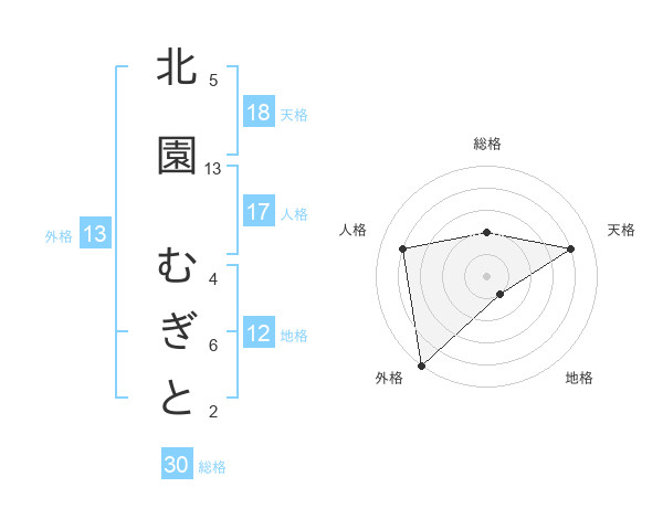 北園 むぎとさんの外格は13画の5点!