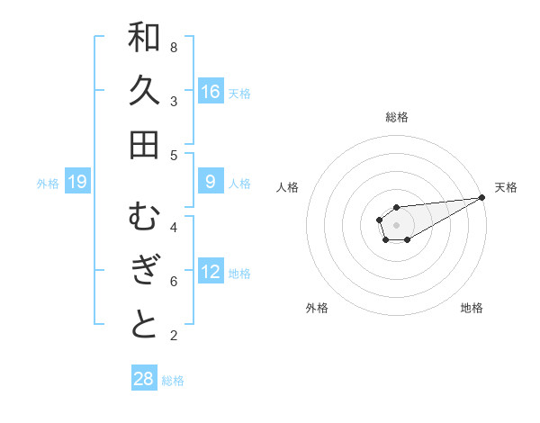 和久田 むぎとさんを姓名の画数から五運を鑑定