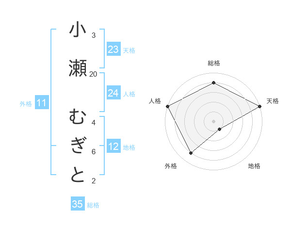 小瀬 むぎとさんを姓名の画数から五運を鑑定
