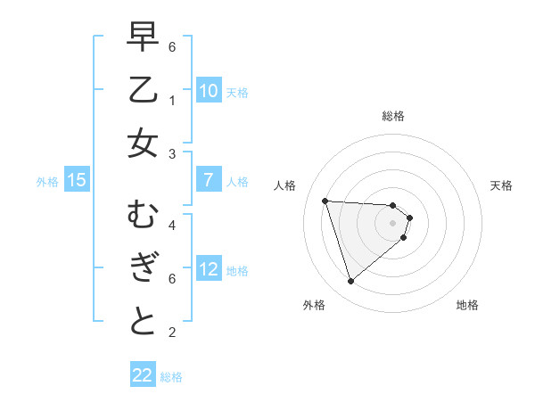 早乙女 むぎとさんを姓名の画数から五運を鑑定