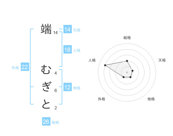 端 むぎとさんの総格は26画の2点!