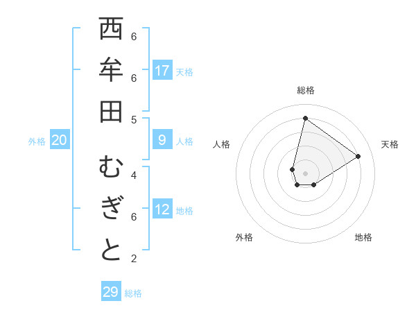 西牟田 むぎとさんを姓名の画数から五運を鑑定
