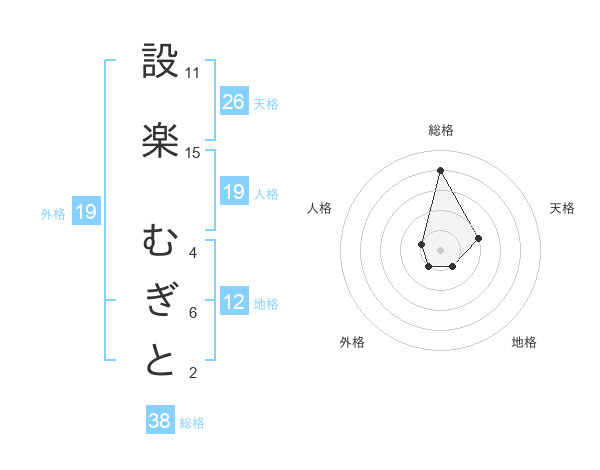 設楽 むぎとさんの総格は38画の4点!