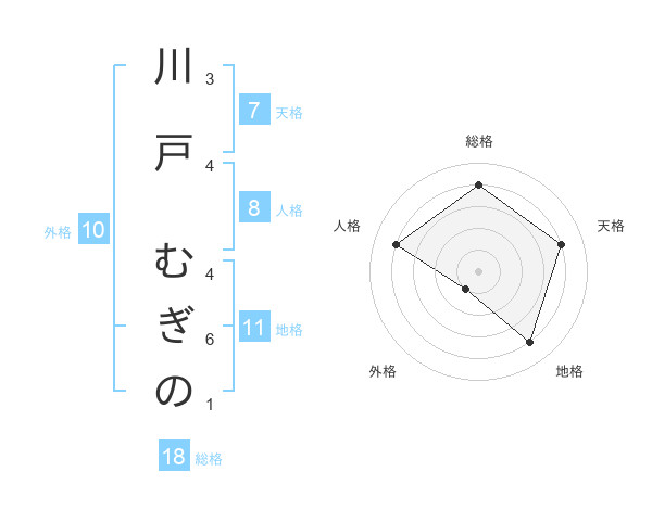 川戸 むぎのさんを姓名の画数から五運を鑑定