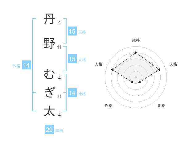 丹野 むぎ太さんを姓名の画数から五運を鑑定