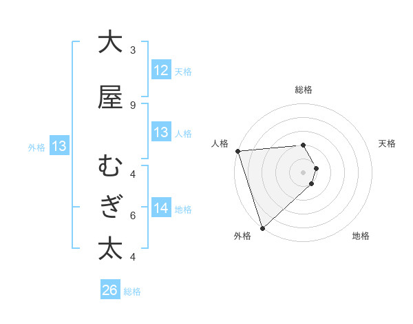 大屋 むぎ太さんを姓名の画数から五運を鑑定