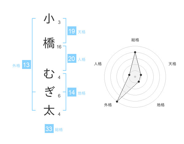 小橋 むぎ太さんの外格は13画の5点!