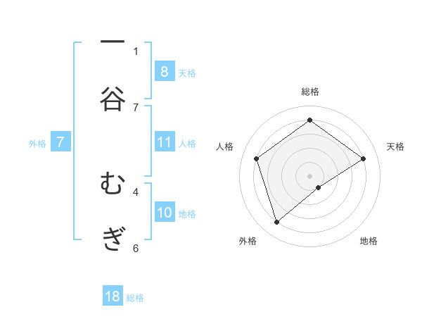 一谷 むぎさんを姓名の画数から五運を鑑定