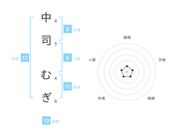 中司 むぎさんの総格は19画の1点!