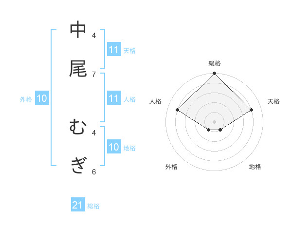 中尾 むぎさんを姓名の画数から五運を鑑定