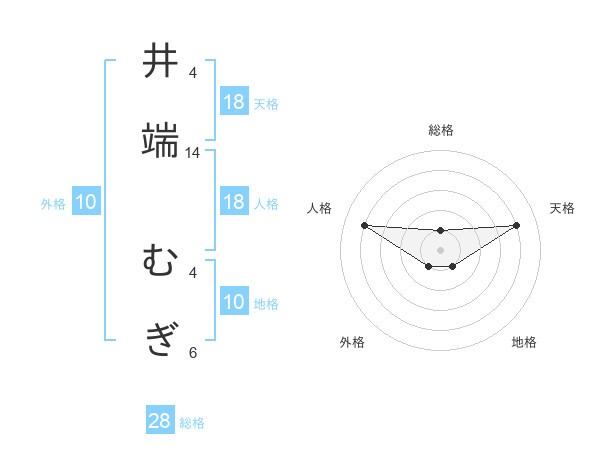 井端 むぎさんの天格は18画の4点!