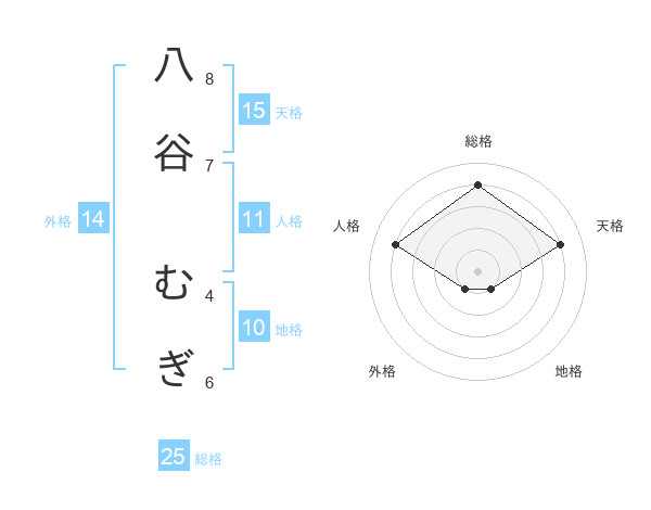 八谷 むぎさんを姓名の画数から五運を鑑定