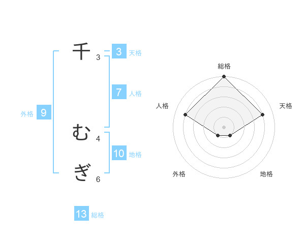 千 むぎさんの総格は13画の5点!