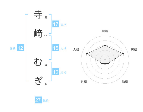 寺﨑 むぎさんを姓名の画数から五運を鑑定