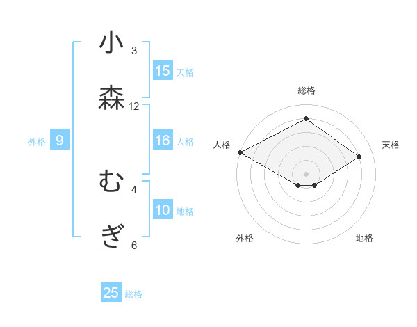 小森 むぎさんの天格は15画の4点!