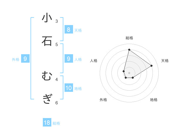 小石 むぎさんの総格は18画の4点!