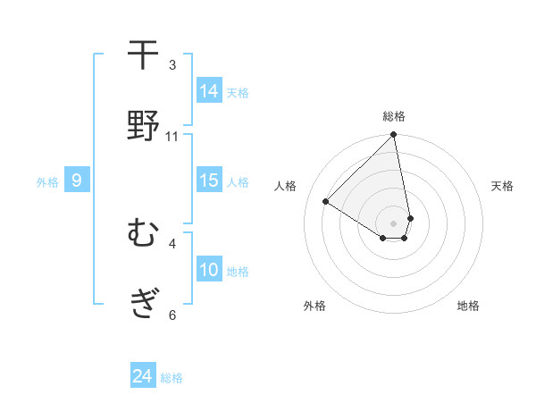 干野 むぎさんの総格は24画の5点!