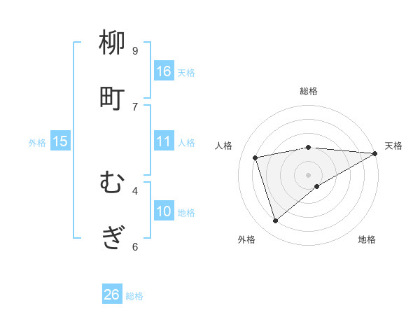 柳町 むぎさんを姓名の画数から五運を鑑定