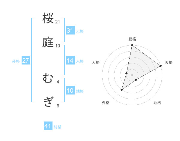 桜庭 むぎさんを姓名の画数から五運を鑑定