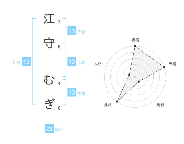 江守 むぎさんの外格は13画の5点!