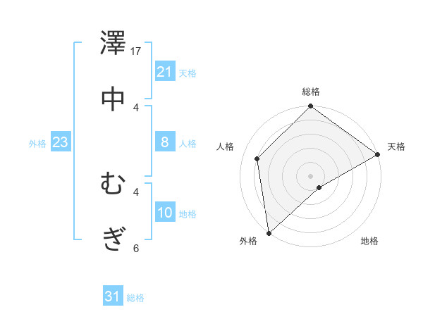 澤中 むぎさんを姓名の画数から五運を鑑定