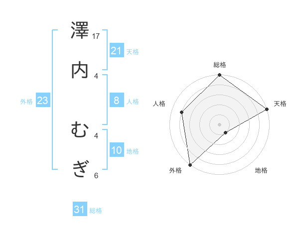 澤内 むぎさんを姓名の画数から五運を鑑定