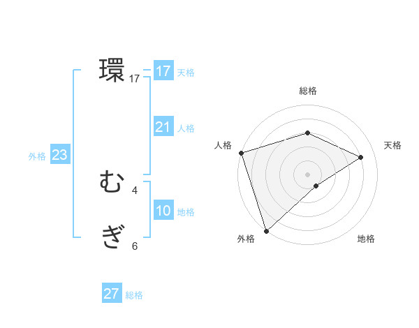 環 むぎさんの外格は23画の5点!