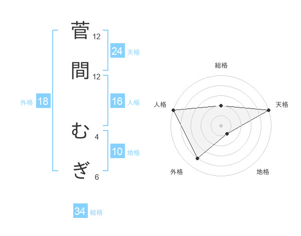 菅間 むぎさんを姓名の画数から五運を鑑定