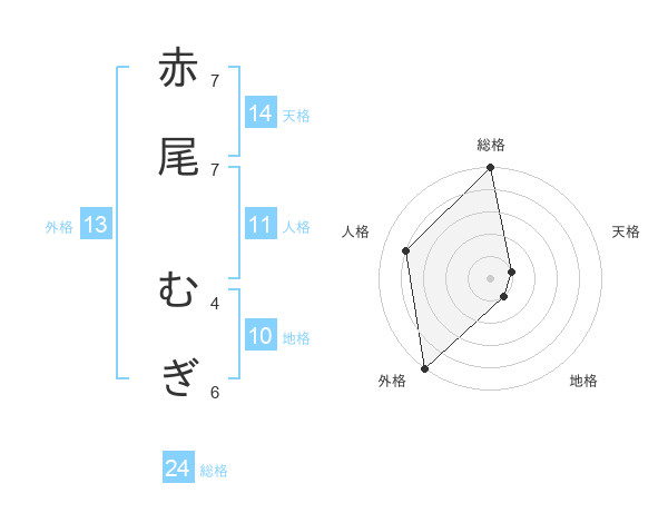 赤尾 むぎさんの総格は24画の5点!