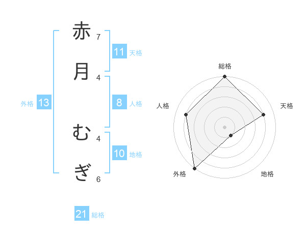 赤月 むぎさんの総格は21画の5点!