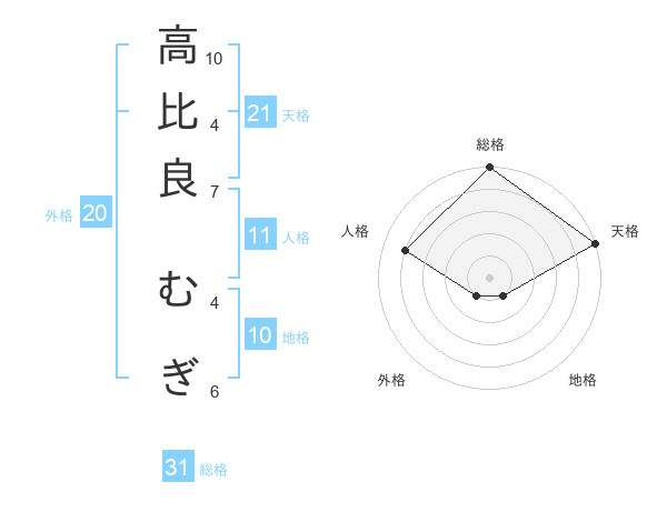 高比良 むぎさんの総格は31画の5点!
