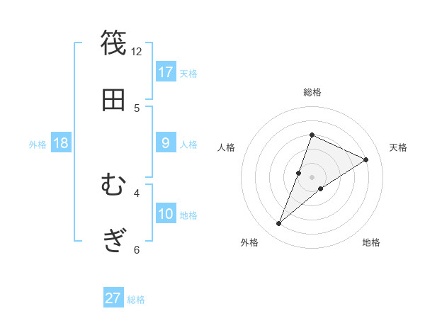 筏田 むぎさんを姓名の画数から五運を鑑定