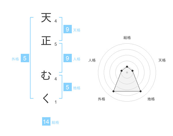 天正 むくさんの地格は5画の4点!