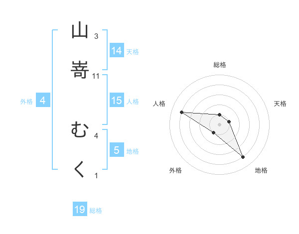 山嵜 むくさんの天格は14画の1点!