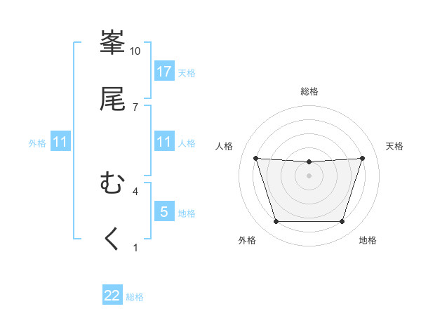 峯尾 むくさんの総格は22画の1点!