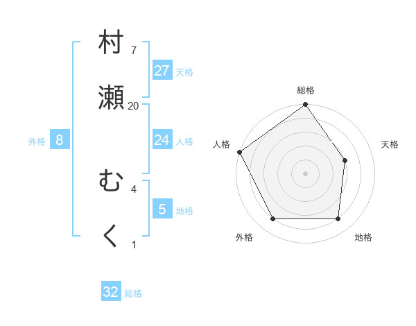 村瀬 むくさんの総格は32画の5点!