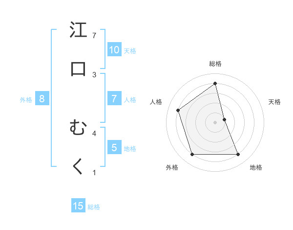 江口 むくさんの総格は15画の4点!