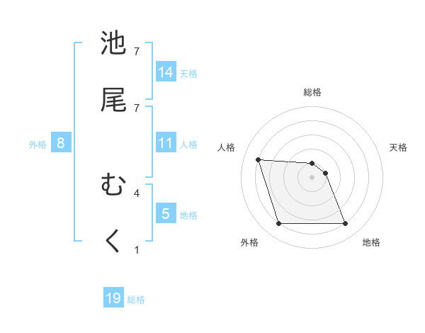 池尾 むくさんの総格は19画の1点!