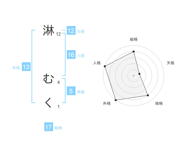 淋 むくさんの外格は13画の5点!