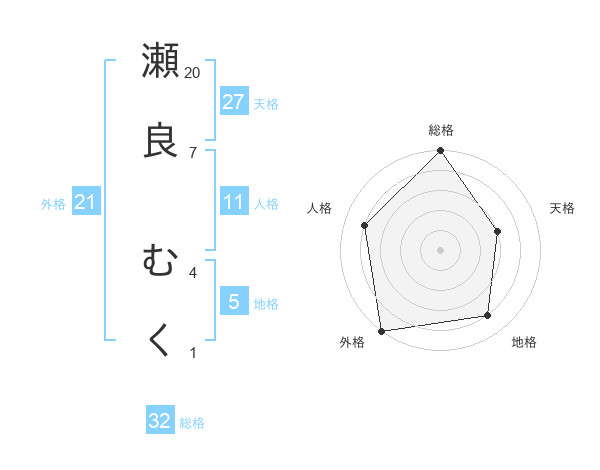 瀬良 むくさんを姓名の画数から五運を鑑定