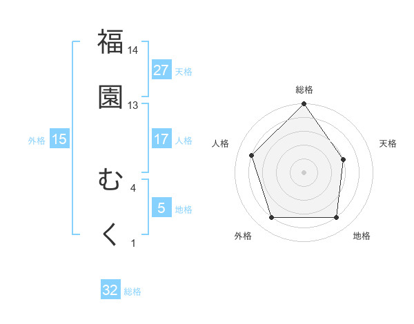 福園 むくさんの総格は32画の5点!