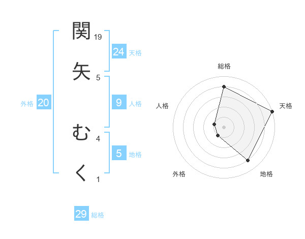 関矢 むくさんの総格は29画の4点!