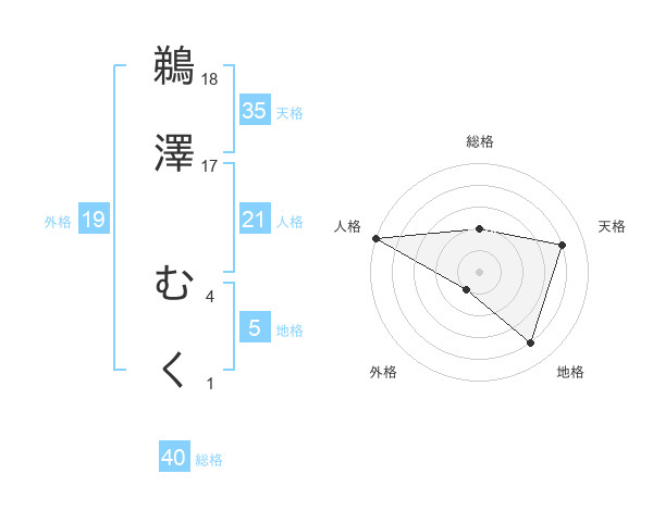 鵜澤 むくさんを姓名の画数から五運を鑑定